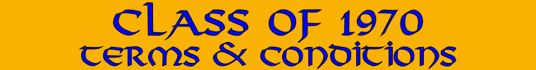 This site is fully controlled and operated by Class of 1970 (referred to below as "Class of 1970" "we," "us," and "our"). By accessing and using this Site, you agree to be legally bound by these Terms and Conditions. If you do not agree to these terms, please do not use the Site. We reserve the right, at our sole discretion, to change, modify, add to, or otherwise alter these Terms and Conditions at any time. Such changes and/or modifications shall become effective immediately upon their posting, so please review the Terms and Conditions posted at this link periodically. Your continued use of the Site following the posting of changes and/or modifications will constitute your acceptance of the revised Terms and Conditions.